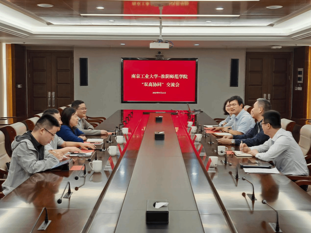 在南京工业大学,副校长顾学红介绍了学校的情况,代表学校对丁红燕副校长一行表示诚挚的欢迎。他表示,淮阴师范学院与南京工业大学渊源深厚,有着长期良好的合作基础和广阔的合作前景。未来,希望两校以“双高协同”为契机,进一步深化合作交流,在服务地方经济社会发展上携手共进。丁红燕副校长指出,南京工业大学相关学科实力雄厚,与地方合作已有成功先例,在科技成果转化与孵化方面积累了丰富经验,值得我校深入学习借鉴。双方还围绕“双高协同”中的平台共建、科研合作等话题展开了深入讨论。