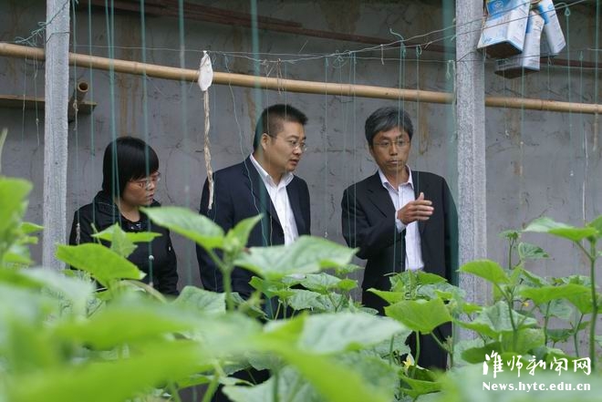 10月13日,江苏省农业科技自主创新资金项目管理单位江苏省农业科学院科技服务处邵明灿副处长一行在淮安市农科院领导、生科院王新风教授的陪同下来到淮阴区丁集镇,对王新风教授承担的江苏省科技专项资金中农业科技自主创新资金“日光能温室黄瓜—草菇低碳高效栽培新模式示范与推广”项目进行现场考察。王新风教授在黄瓜大棚现场介绍了项目的实施情况和下一阶段的实施方案。邵处长对项目的实施工作给予了肯定,并希望项目组能在栽培模式示范推广的基础上对该模式下土壤性质的影响进行深入的研究。
