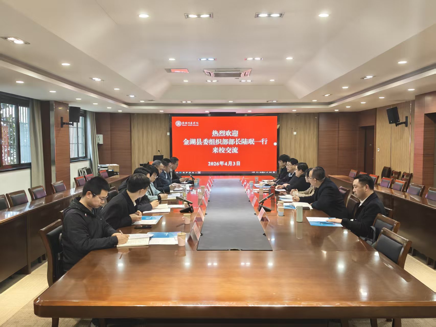 图为金湖县委组织部一行来淮师调研交流。记者 宋超 摄
