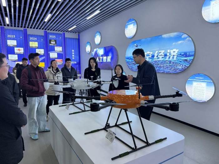 在江苏开天眼无人机科技有限公司,调研组详细了解了企业在无人机系统研发、应用场景拓展及产业化推进方面的成果。丁红燕表示,无人机技术与信息感知、智能控制、通信技术等学科高度融合,与学校物电学院的学科方向契合度高,希望未来在无人机关键技术研发、人才培养和成果转化方面开展务实合作。